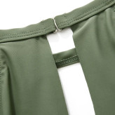 مایو دو تکه تاپشورت وارداتی با طراحی پوشیده و شیک تاپ سبز با برش کلیدی ، شورت راهراه جذب با پوشش کامل مناسب برای ساحل و استخر، همزمان راحت و خوشاستایل