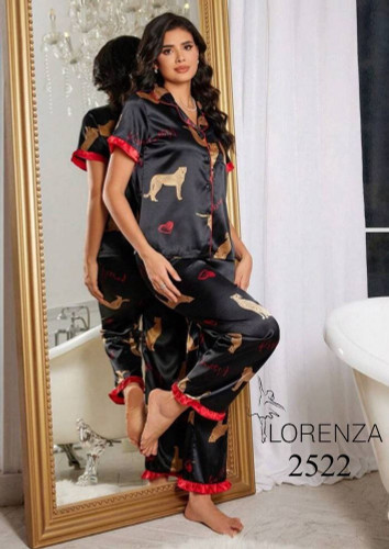 لباس خواب شومیز شلوار ساتن کالباسی برند لورنزا